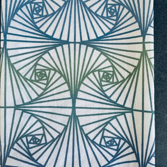 Blues and Greens Ombre Ginko Fans Tea Towel