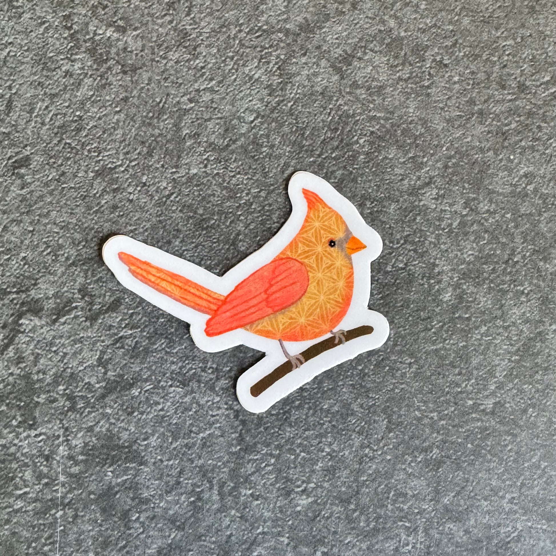 This tiny sticker features a female cardinal. I love their more subtle coloring and I enhanced their body with some triangular tangles.