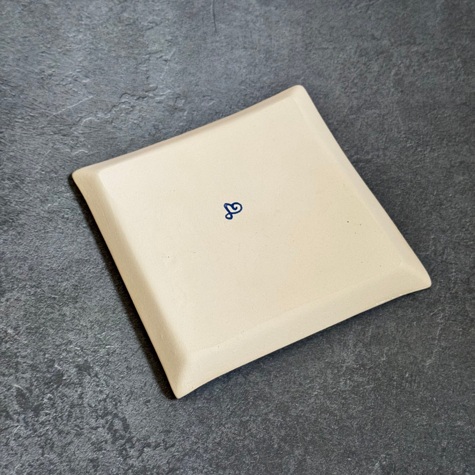 This rounded square tray measures 7 inches on each side. It is 1/2 inch tall.