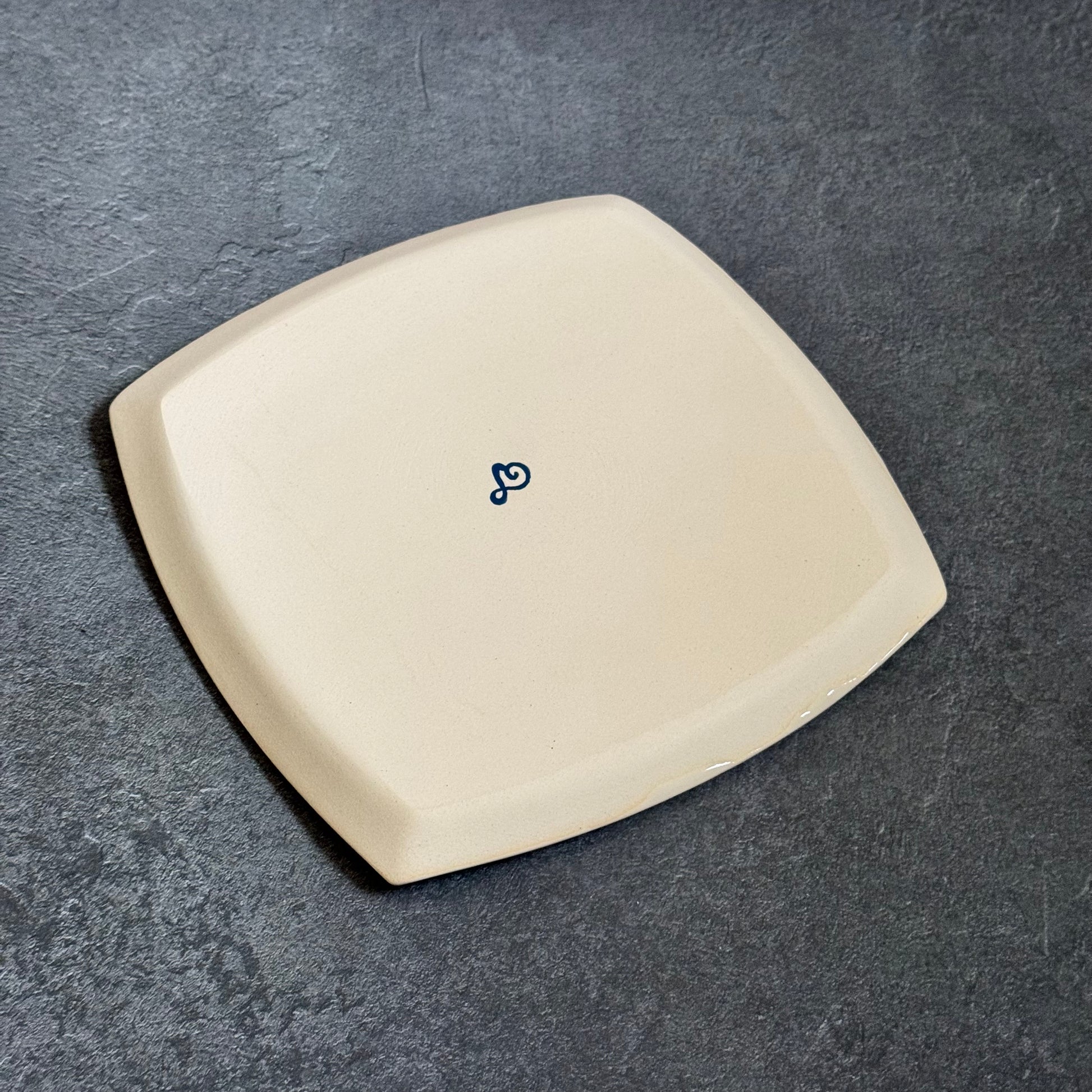 This rounded square tray measures 8-1/4 inches on each side. It is 1/2 inch tall.